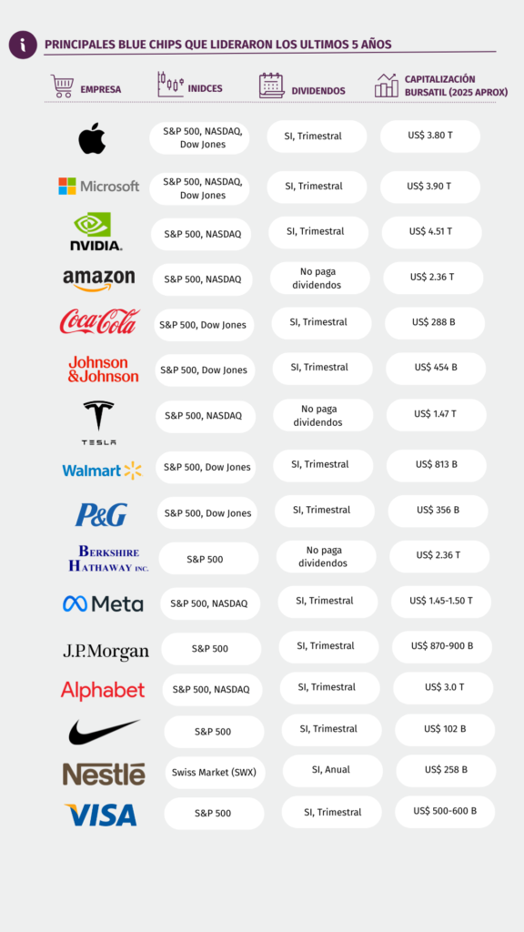 En resumen… Invertir en blue chips es como construir sobre cimientos firmes 🧱. Te dan tranquilidad en los momentos de volatilidad, rendimientos estables y la confianza de estar respaldado por compañías líderes a nivel mundial 🌍
